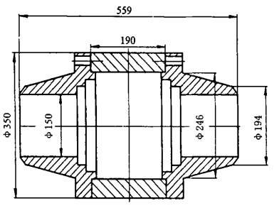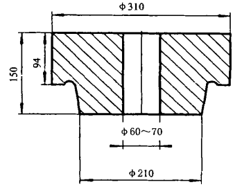 The forging process of the middle valve body (Figure 4) is according to free forging of the conventional hollow cylinder forgings. The processes are as the following: punching-punch reaming-horse frame reaming. Special tools and dies are not required. The weight of the forging is 79.4kg, and the material utilization rate is 78%.